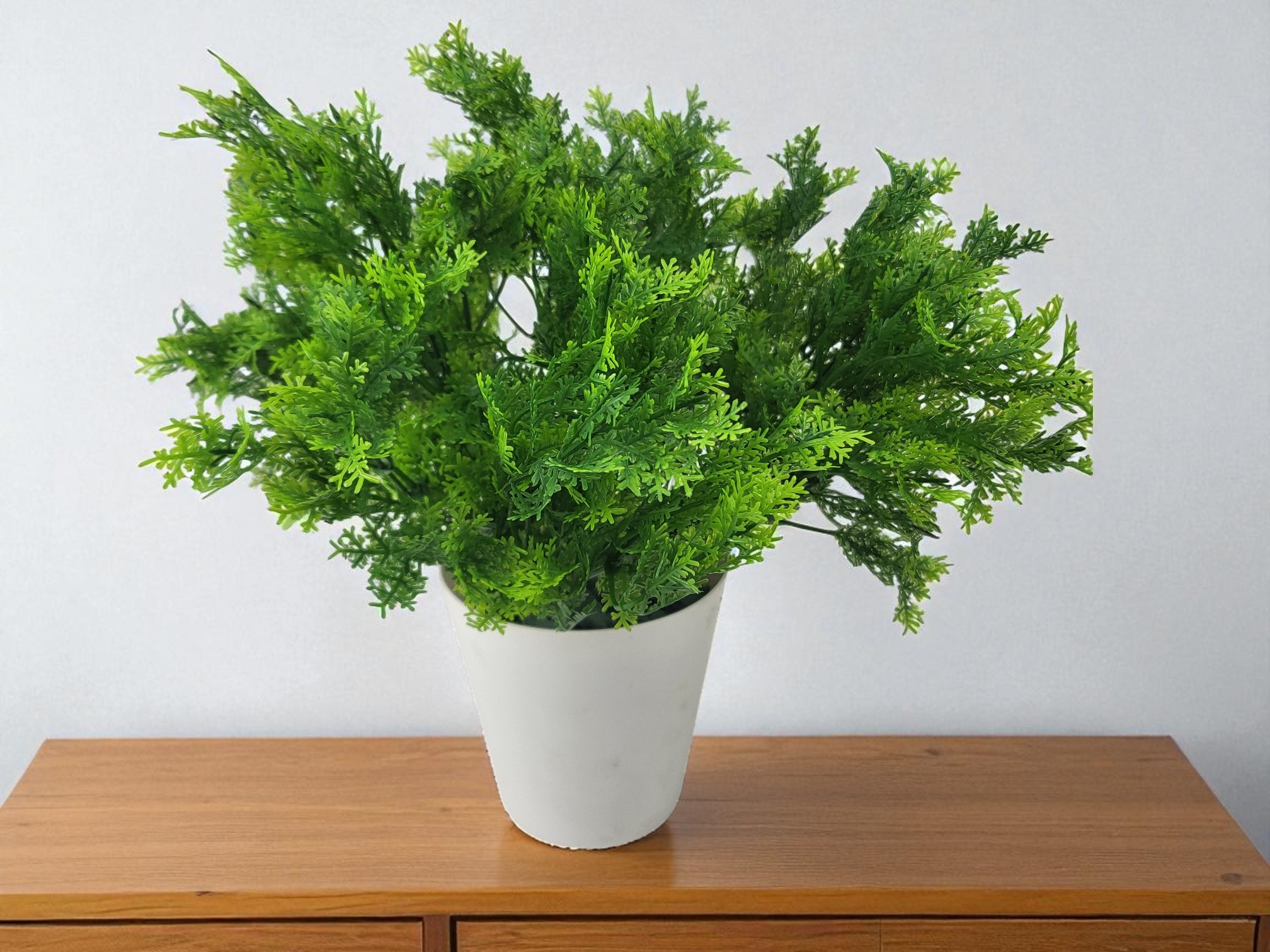 Realistycznie wykonany, bukiet sztucznego mchu, do złudzenia przypominający żywą roślinę.