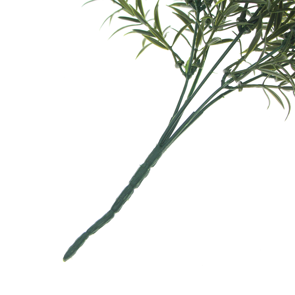 Bukiet składa się z 5 gęstych pędów, bogato obsypanych liśćmi o starannie odwzorowanej fakturze. Dzięki temu świetnie prezentuje się samodzielnie lub jako dodatek do większych kompozycji florystycznych, stroików czy zielonych ścian