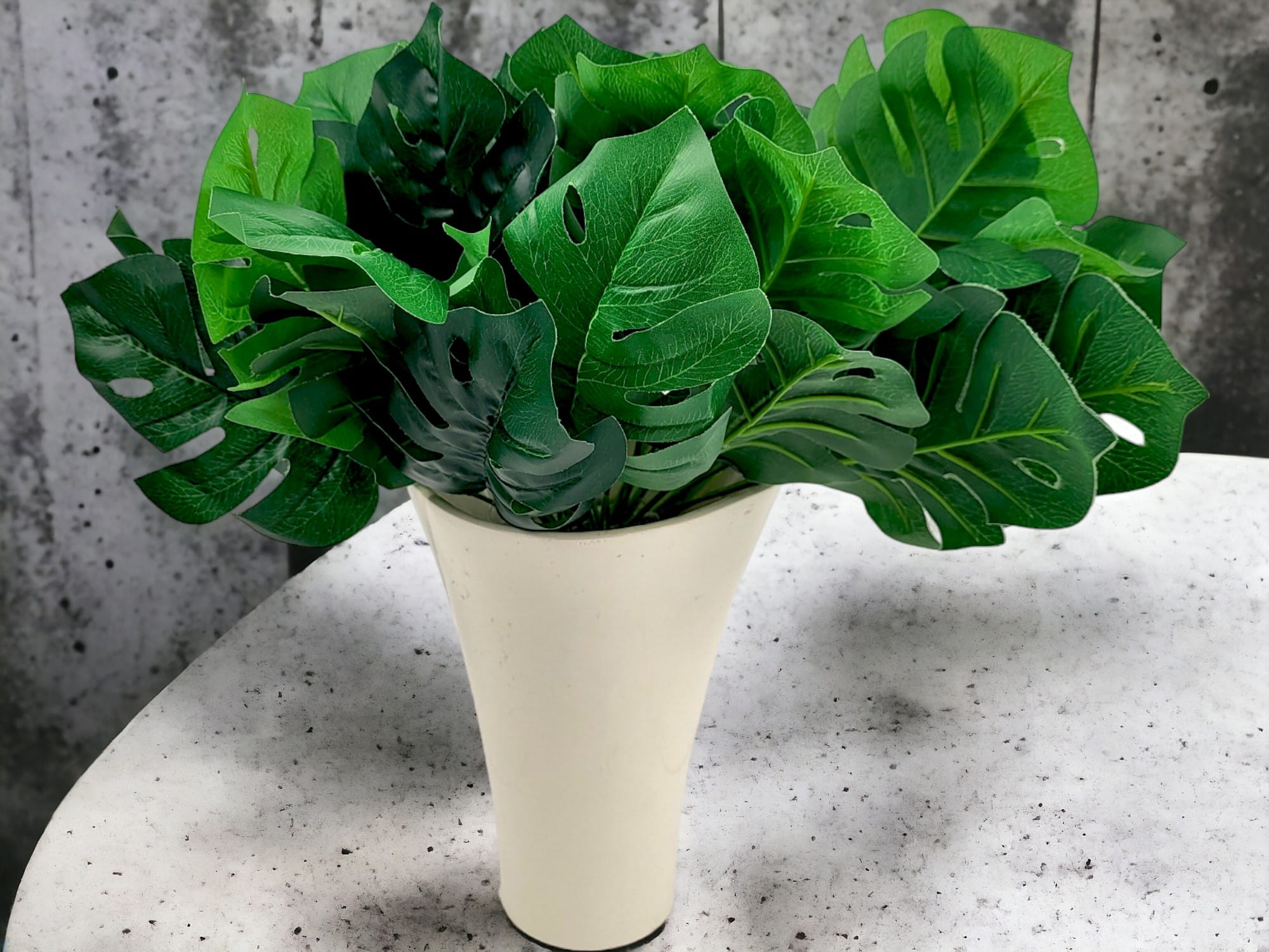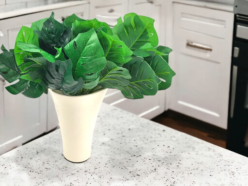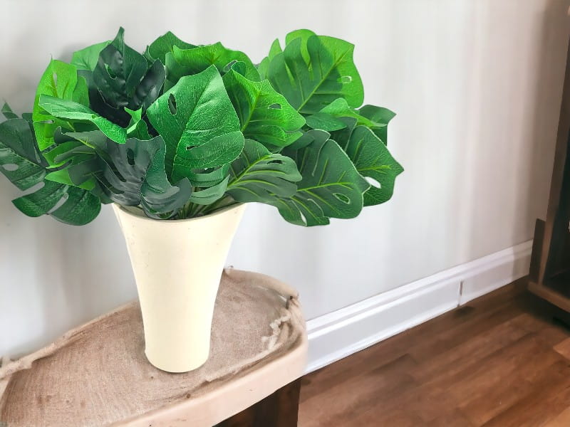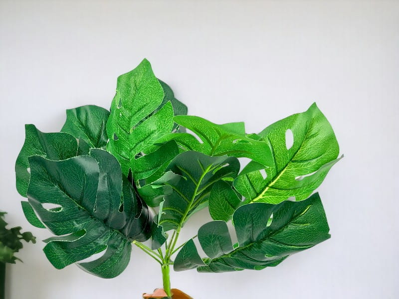 Realistycznie wykonany, piękn bukiet sztucznej Monstery do złudzenia przypominający żywe liście. Wyszukana ozdoba wnętrz, balkonów, tarasów oraz przestrzeni komercyjnych.
