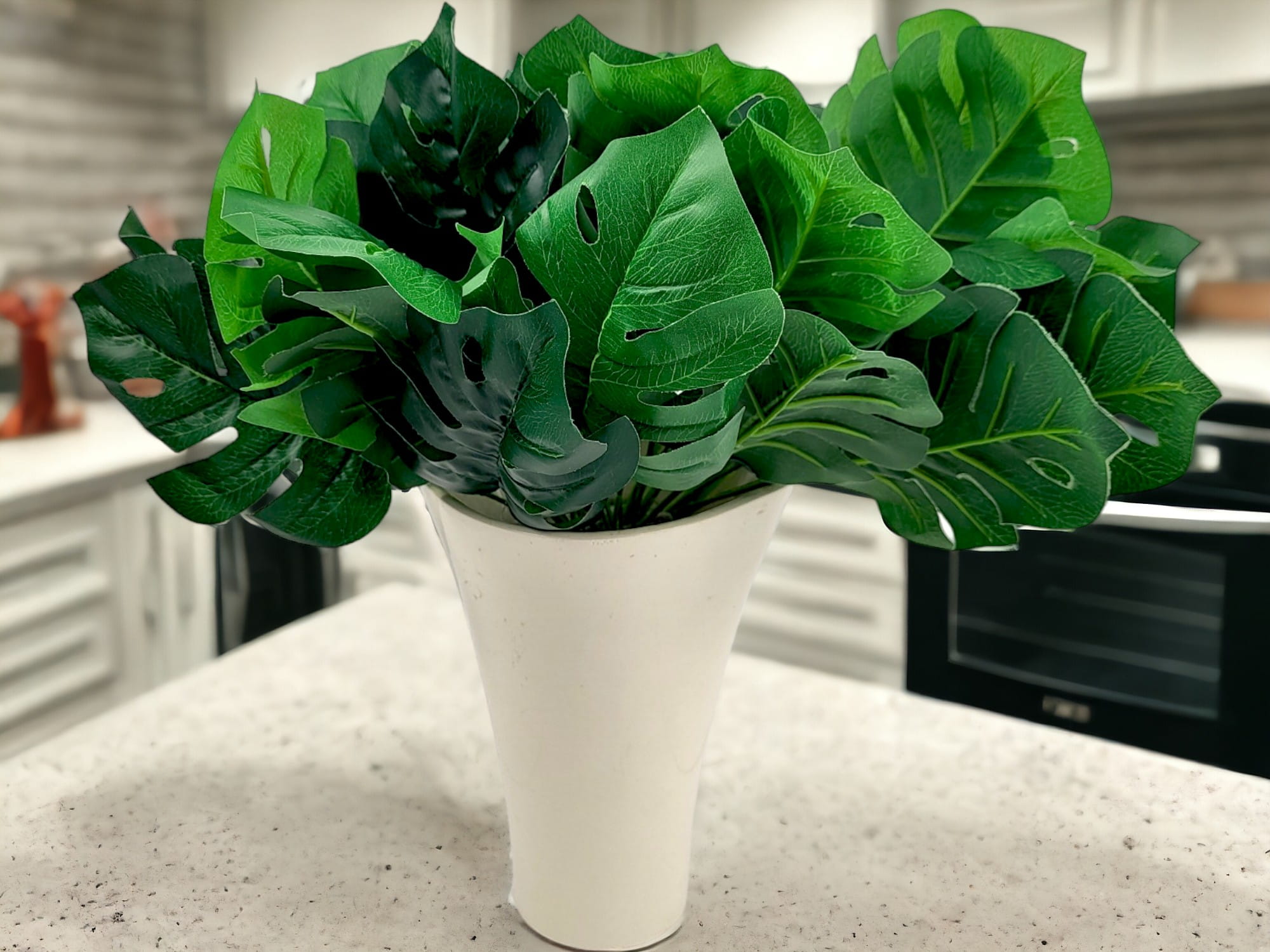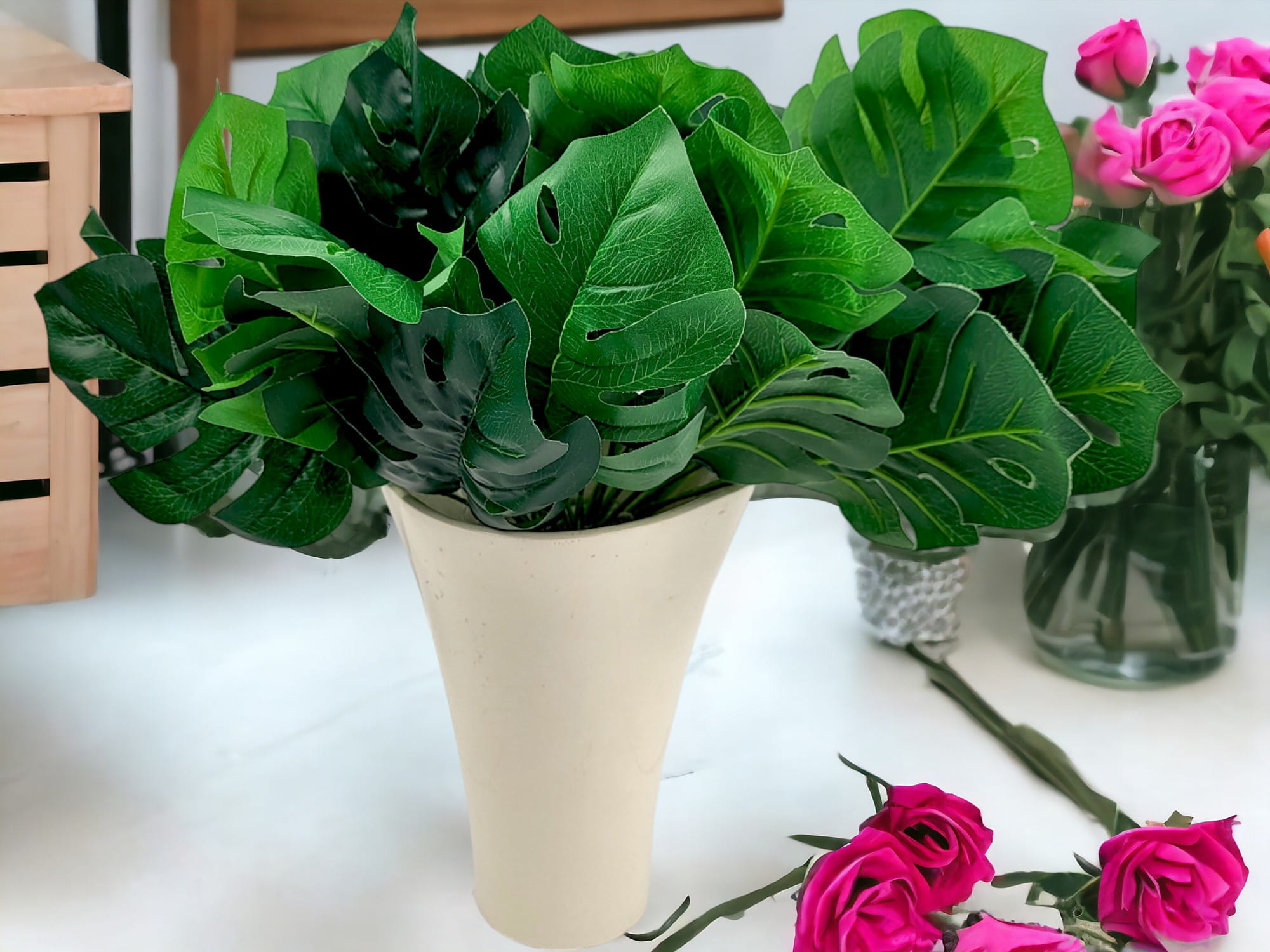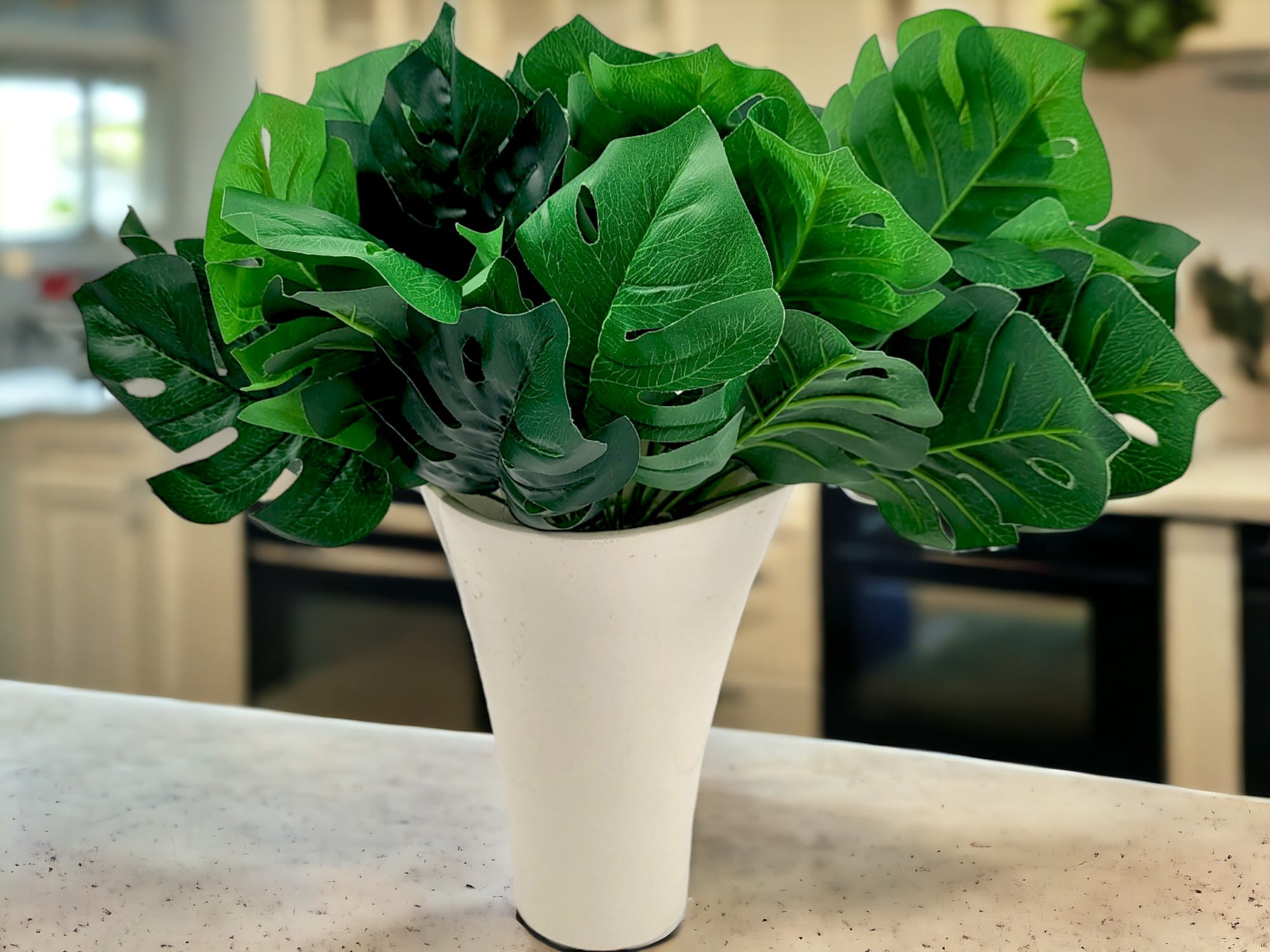 Realistycznie wykonany, piękn bukiet sztucznej Monstery do złudzenia przypominający żywe liście. Wyszukana ozdoba wnętrz, balkonów, tarasów oraz przestrzeni komercyjnych.