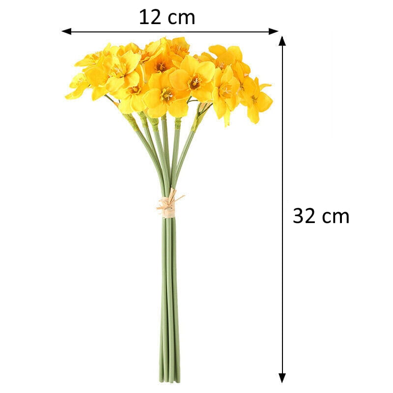 Bukiet sztucznych kwiatów przypominający naturalne rośliny. Piękna dekoracja która nada wiosennej świeżości każdemu wnętrzu. Idealna propozycja do salonu, biura, restauracji i innych przestrzeni komercyjnych. Sprawdzi się również jako element kompozycji florystycznych i stroików.