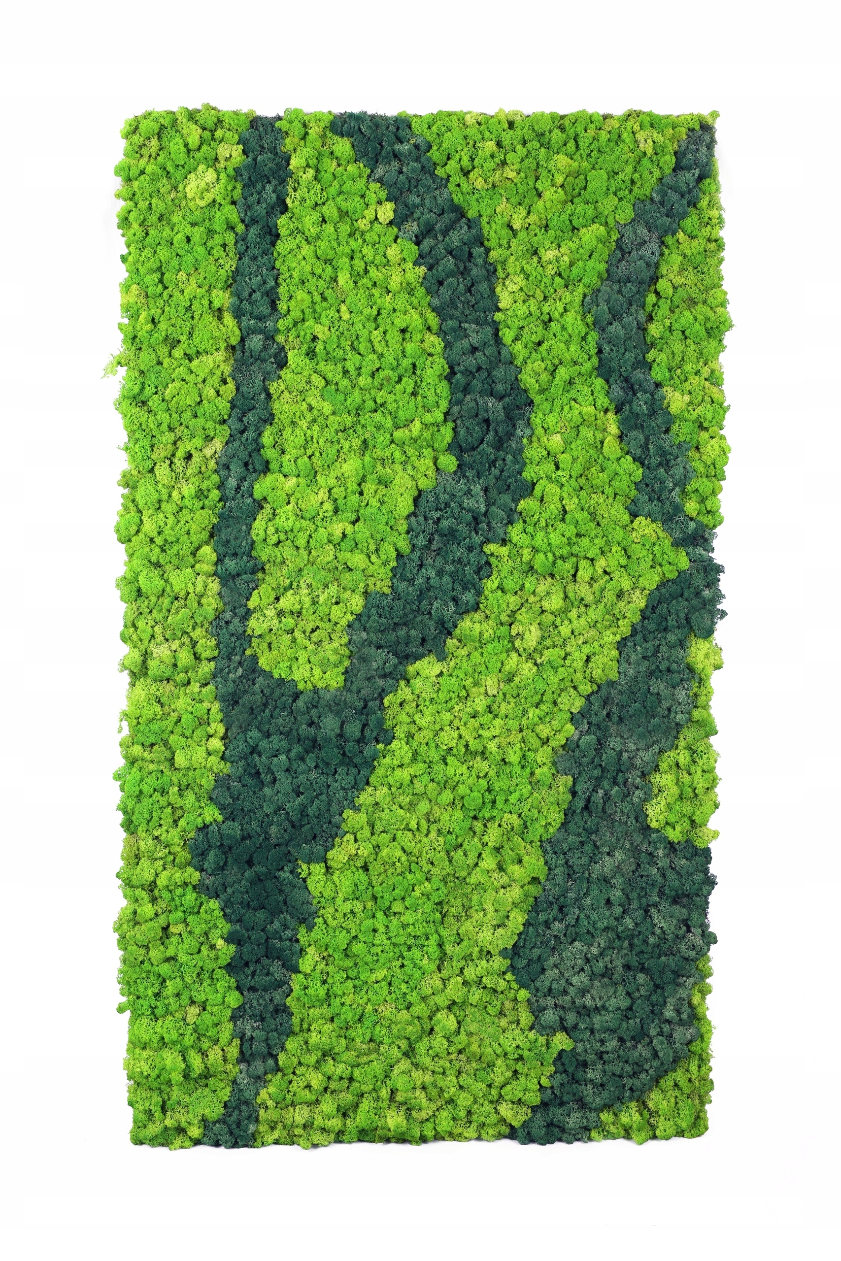 Wykonany ręcznie obraz ścienny pokryty norweskim porostem Mchem Chrobotkiem Reniferowym w dwóch kolorach. Estetycznie wykonany, miękki i przyjemny w dotyku obraz stanowi niepowtarzalny element dekoracyjny każdego wnętrza.