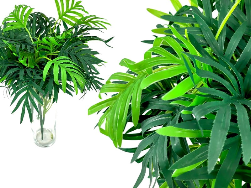Realistycznie wykonany bukiet-palma, do złudzenia przypominająca żywą roślinę. Wyszukana ozdoba wnętrz, balkonów, tarasów oraz przestrzeni komercyjnych.