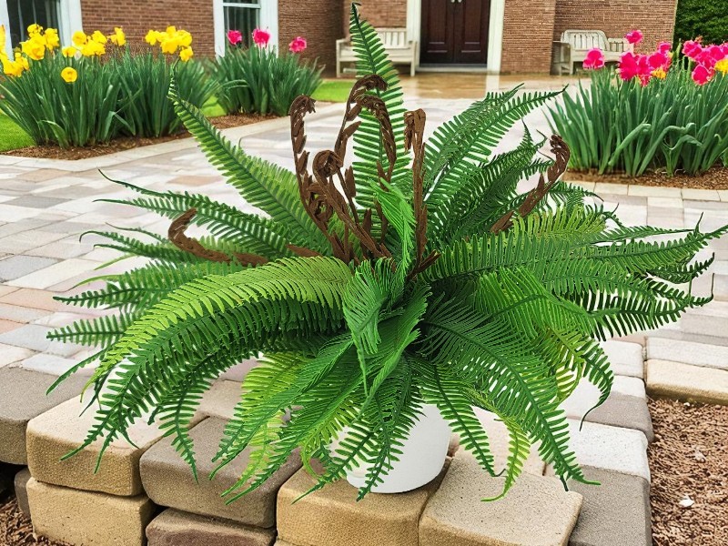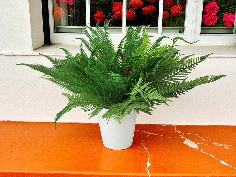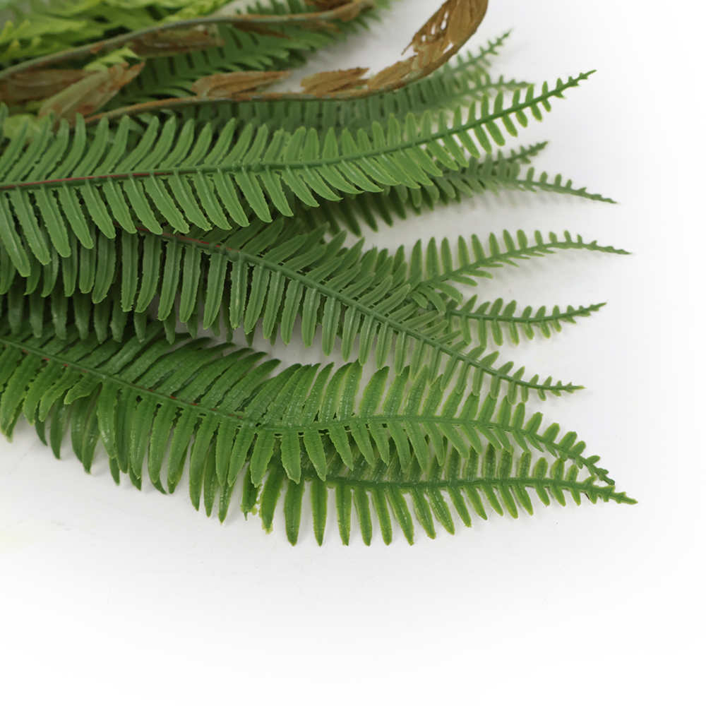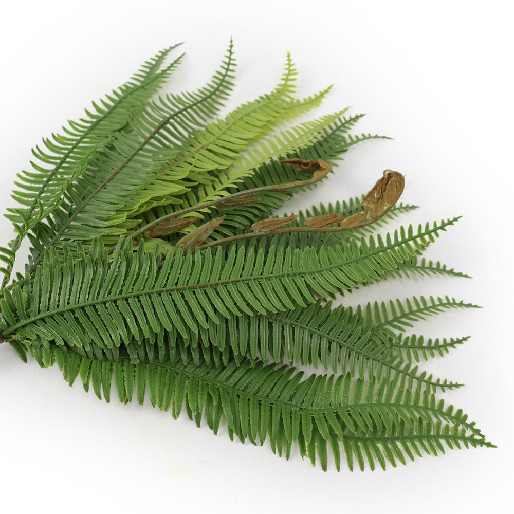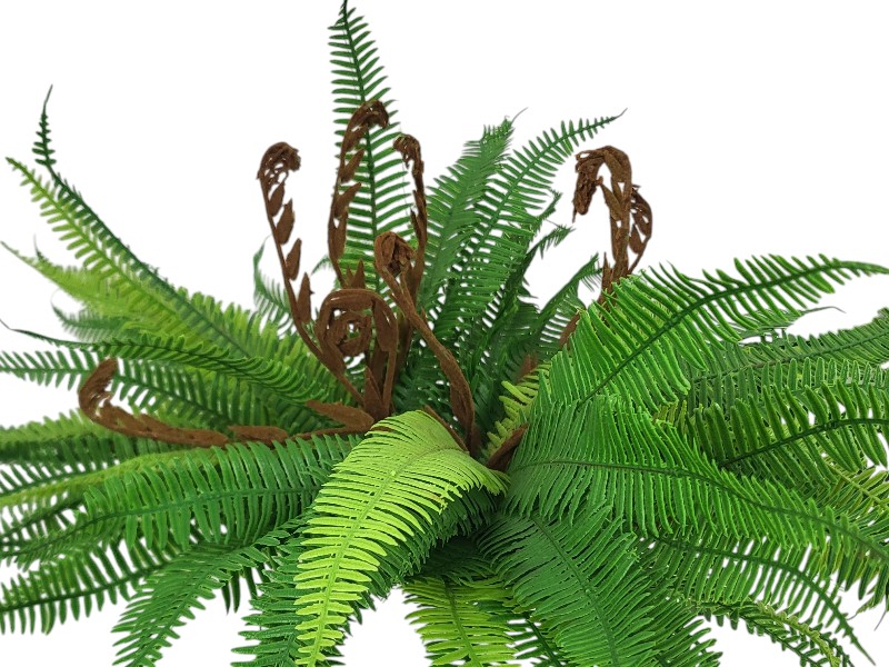 Realistycznie wykonany, bukiet sztucznych paproci, do złudzenia przypominający żywą roślinę.