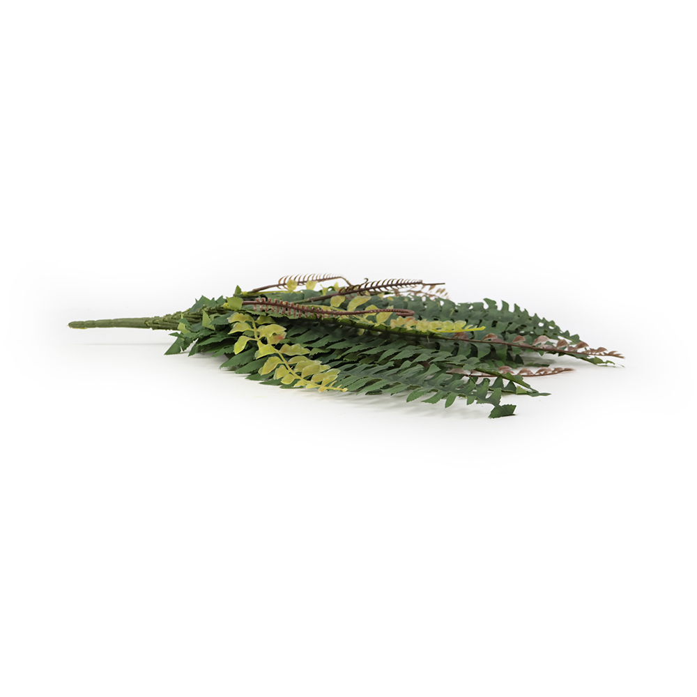 Realistycznie wykonany, bukiet sztucznych paproci, do złudzenia przypominający żywą roślinę.