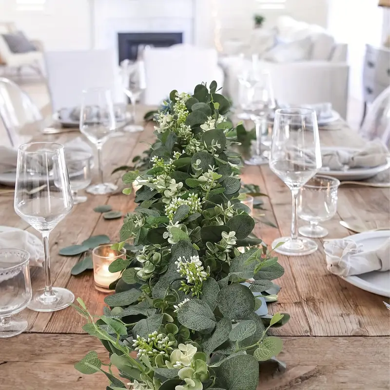 Piękne zielone pnącze Eukaliptusa do złudzenia przypominające naturalną roślinę, stanowi doskonałą propozycję dekoracji wnętrz.