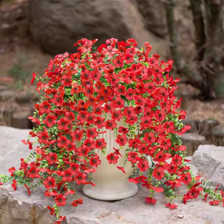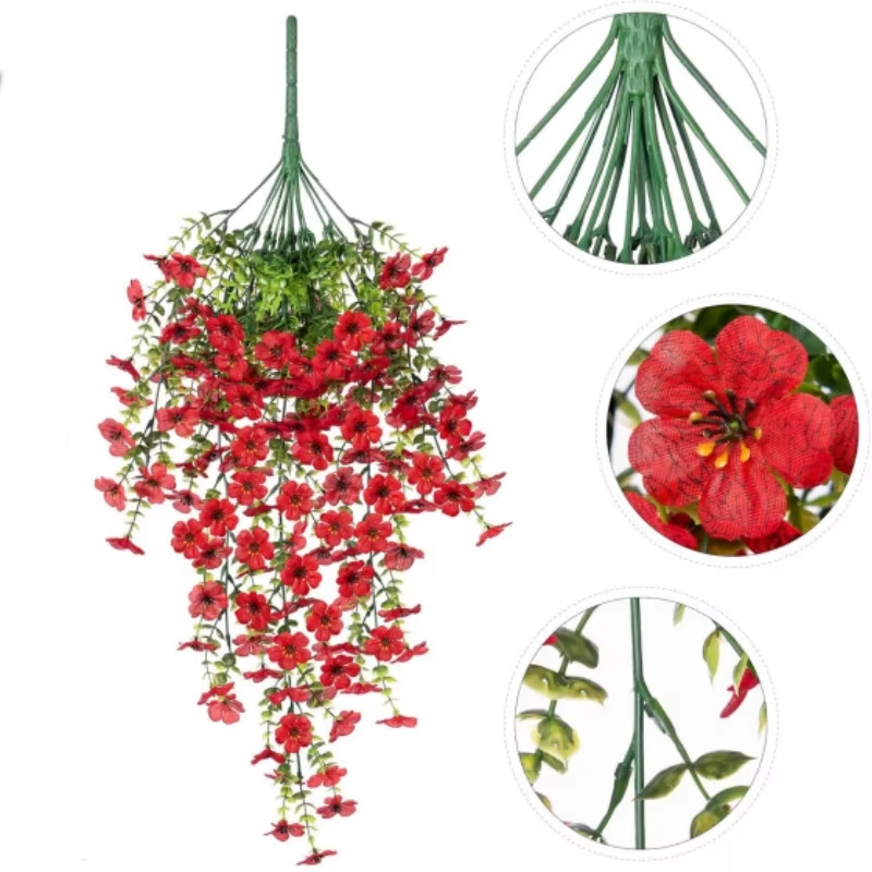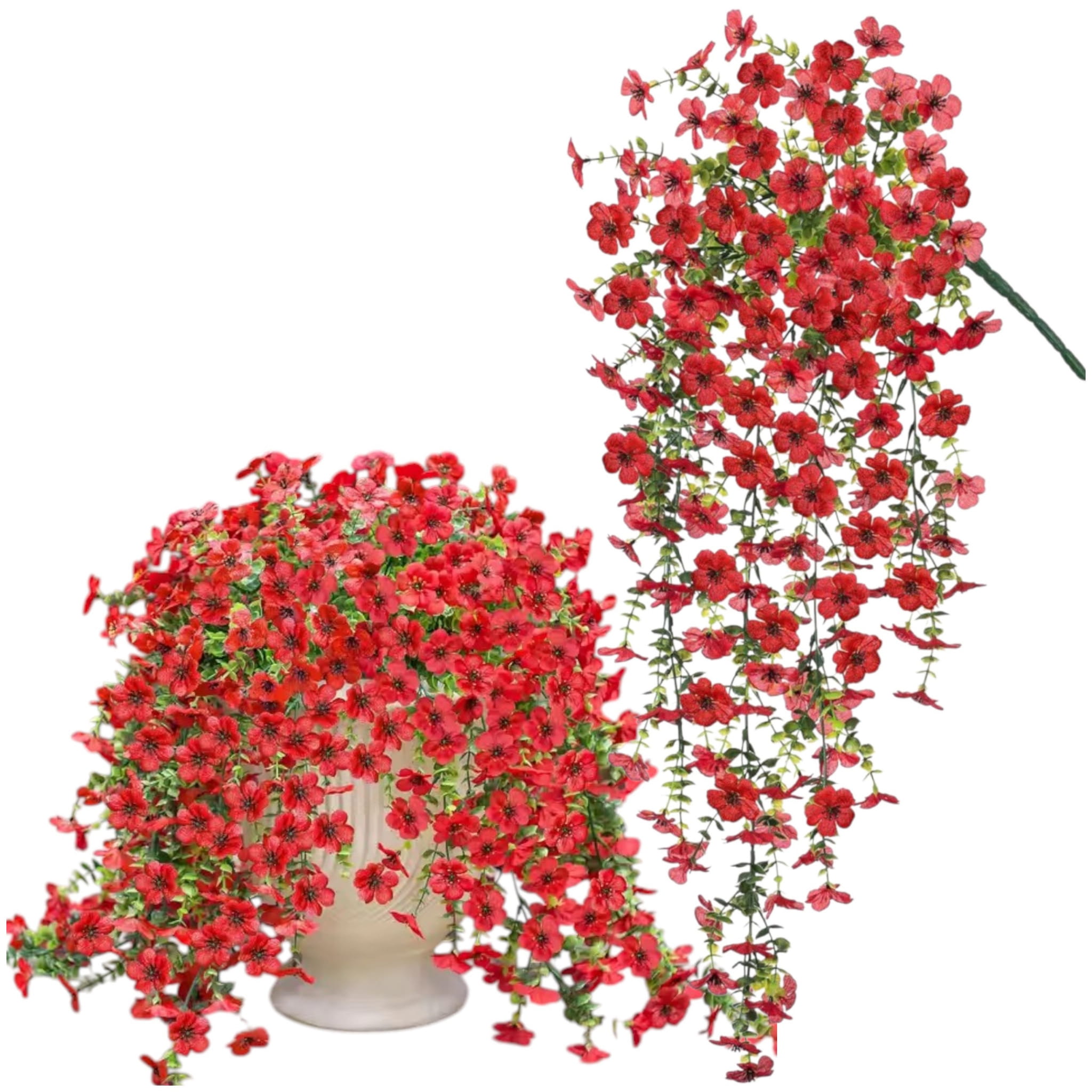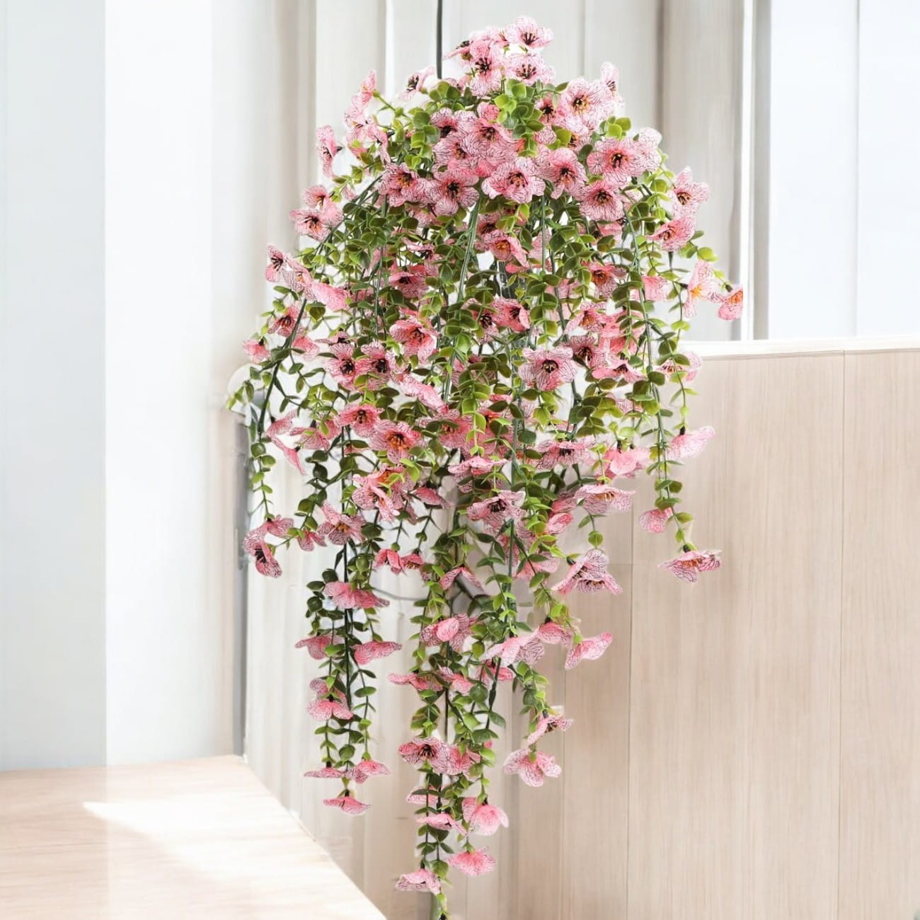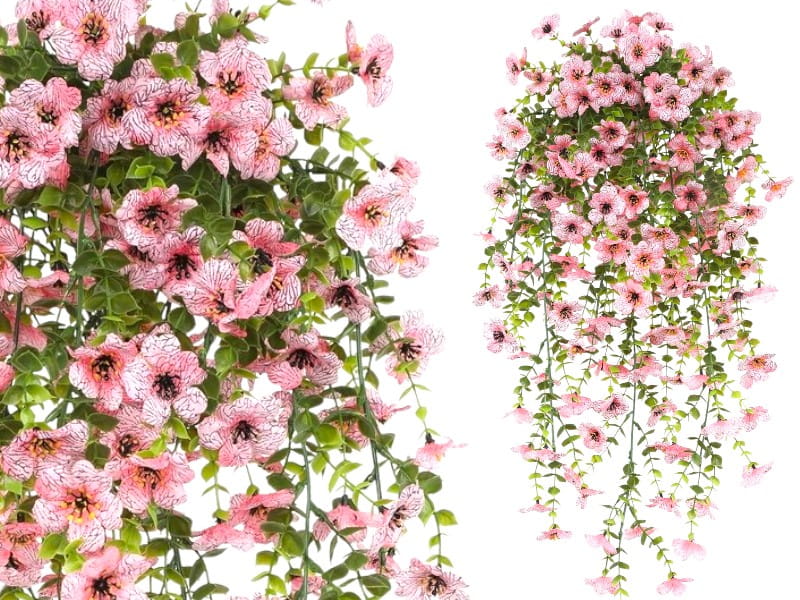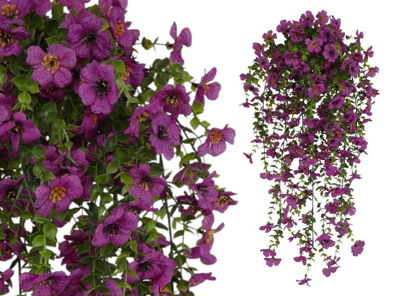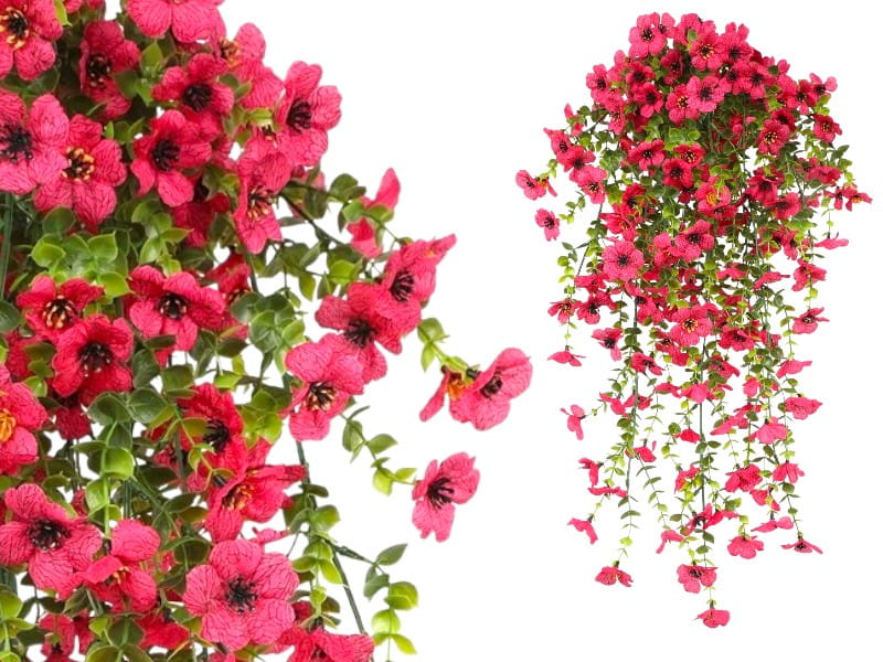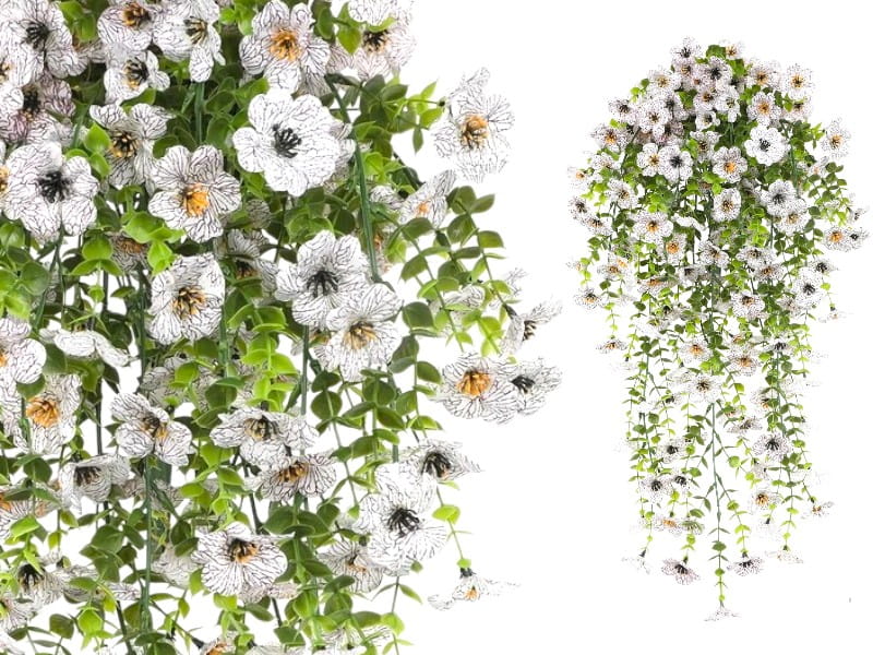 Sztuczne długie kwiatostany Petunii to piękna dekoracja roślinna do złudzenia przypominająca naturalne kwiaty. Idealnie sprawdzi się na tarasach, balkonach jak również w kompozycjach florystycznych. Sztuczne kompozycje z Petunii można umieścić w wazonie, w wysokiej donicy, wiaderku lub w wiszącej doniczce na balkonie, tworząc unikatową dekorację.