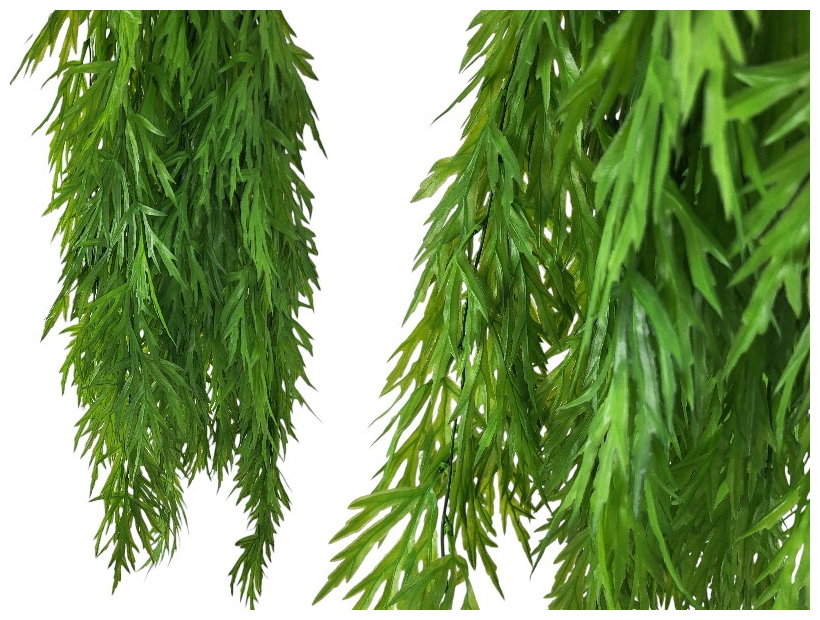 Wprowadź do swojej przestrzeni naturalny akcent bez konieczności pielęgnacji. Długie, gęsto osadzone pędy z szerokimi liśćmi to dekoracja wykonana z wysokiej jakości materiałów, która do złudzenia przypomina żywą roślinę. Dzięki starannemu wykonaniu i realistycznemu odwzorowaniu detali, idealnie sprawdzi się zarówno we wnętrzach, jak i na zewnątrz – na balkonach, tarasach czy w ogrodach zimowych.