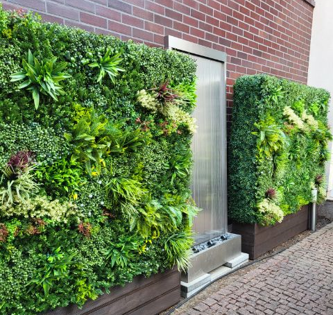 Sztuczna zielona ściana zapewnia prywatność i ochronę przed wzrokiem sąsiadów, a jednocześnie nie blokuje światła słonecznego i nie ogranicza przepływu powietrza. Może być stosowany zarówno w prywatnych ogrodach, jak i na balkonach czy tarasach.
