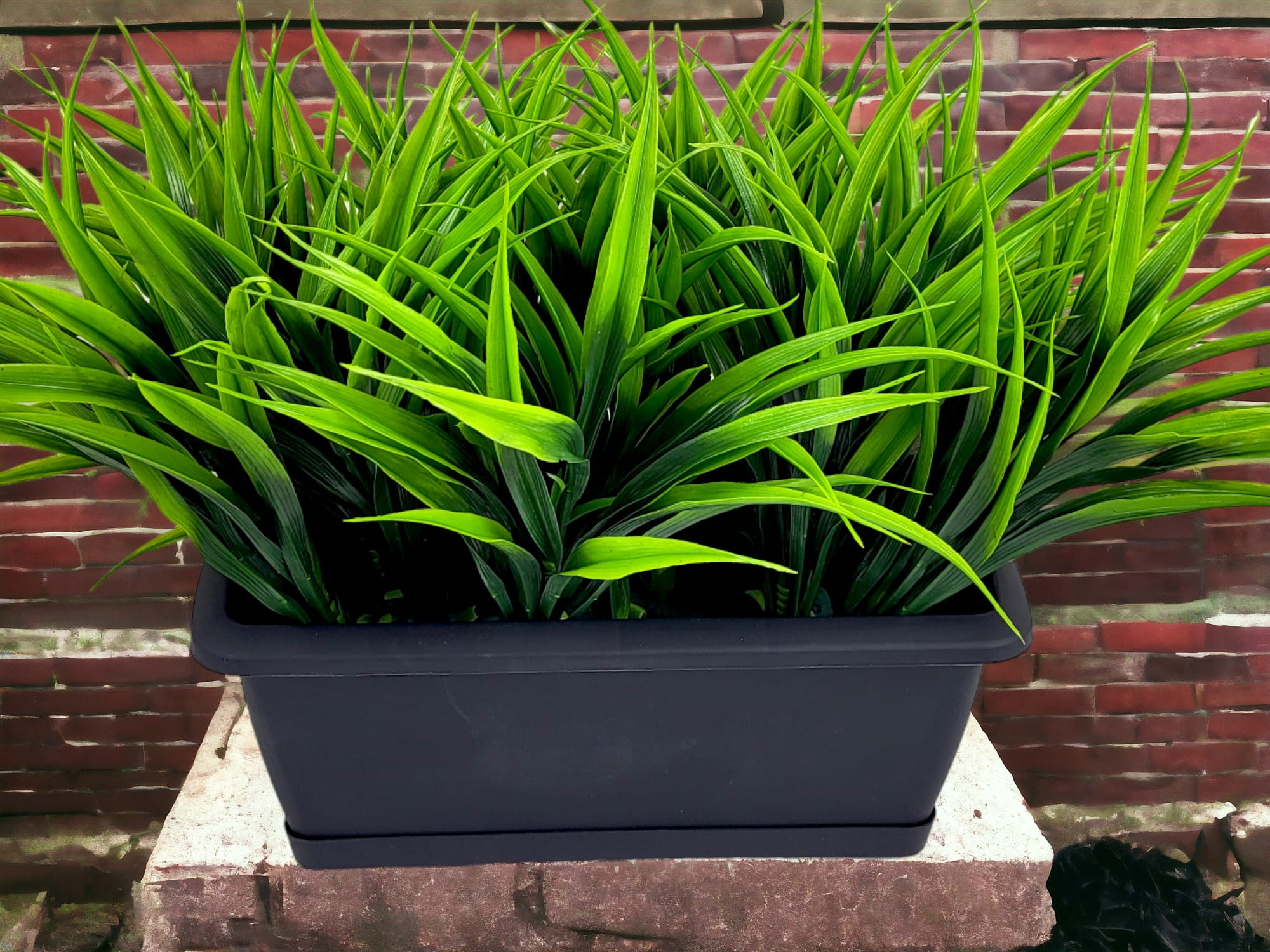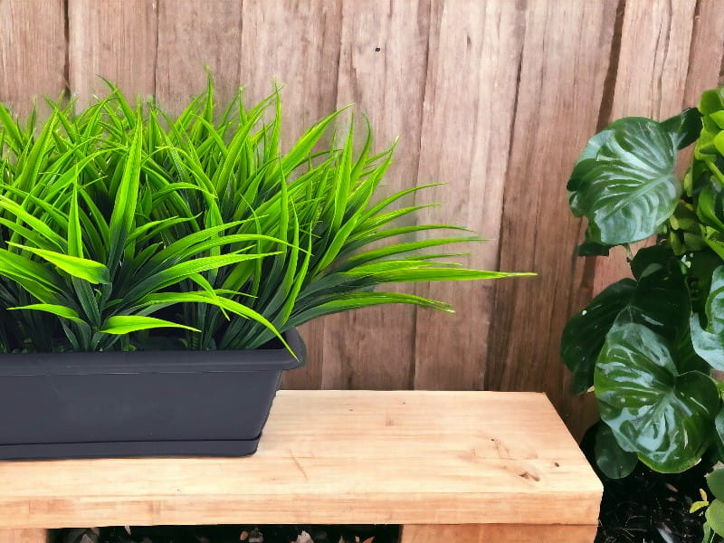 Realistycznie wykonana, sztuczna trawa do złudzenia przypominająca żywą roślinę.